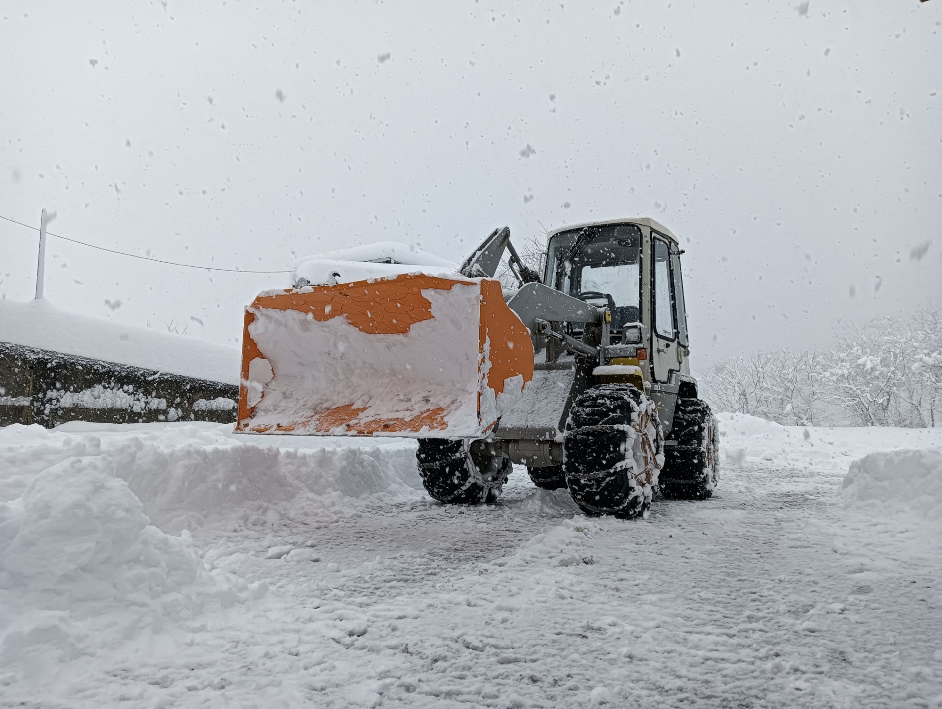 そして毎年登場、タイヤショベルの力を借り一気に雪かきをしていきます。