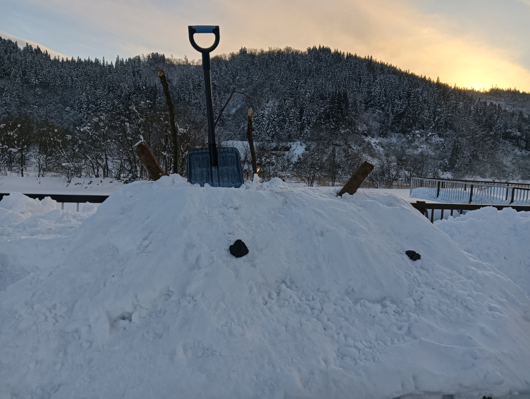 一晩で40cm~50cmくらいの雪が降り積もります、、、。